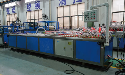 該生產線是我公司引進歐美先進技術,結合國內實際情況研制的產品,具有造型新穎、結構合理、使用方便等特點。配用相應的模具,能夠滿足型材高速生產的需要。該系列生產線主機采用我公司生產的擠出機,達到與輔機、模頭完美匹配。整個生產線實現(xiàn)從進料到最后堆料的全自動控制,其中各個機組也可以單獨手動調整。具有高塑化能力、低能耗、高產量、性能價格比高,壽命長等優(yōu)點,是加工各種塑木異型材的理想設備,更換模具可用于多孔通訊管的生產。