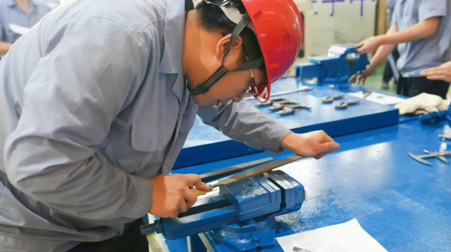 隨著裁判一聲令下,賽場(chǎng)瞬間進(jìn)入 “緊張模式”。選手們迅速拿起工具,有的手持銼刀專注打磨工件,金屬碎屑紛飛中,工件表面逐漸平整如鏡;有的緊盯測(cè)量刻度,精準(zhǔn)把控每一處尺寸,力求誤差控制在毫米級(jí)。
