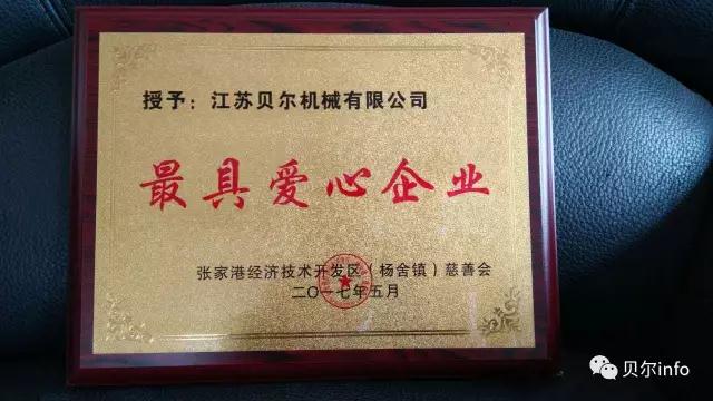 今天,江蘇貝爾機械榮獲經(jīng)濟技術開發(fā)區(qū)慈善會頒發(fā)的‘最具愛心企業(yè)’稱號。
