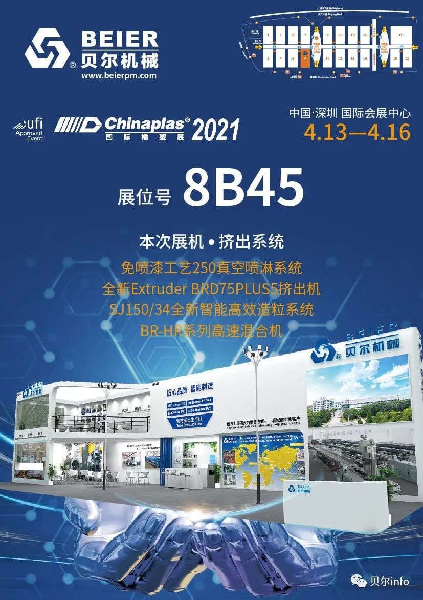 更多精彩,就在4月13-16日,深圳國際會展中心HALL 8B45擠出展位、HALL 6E41回收展位現(xiàn)場!心動不如行動,貝爾機械與您相約!