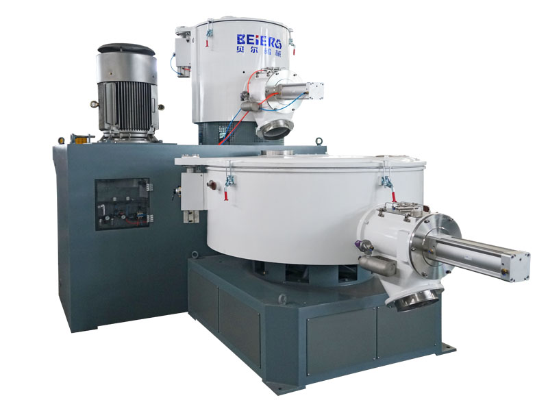 該機(jī)組將熱混和冷混工藝結(jié)合在一起,完成熱混的物料自動進(jìn)入冷混使其冷卻,排除殘余氣體,并可防止結(jié)塊。